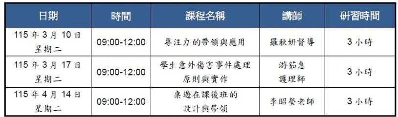 NEW!! 114下半年度課後照顧服務人員在職訓練(9小時)開始報名囉!(114/11/4-114/12/9、臺北市政府教育局核定委託辦理)